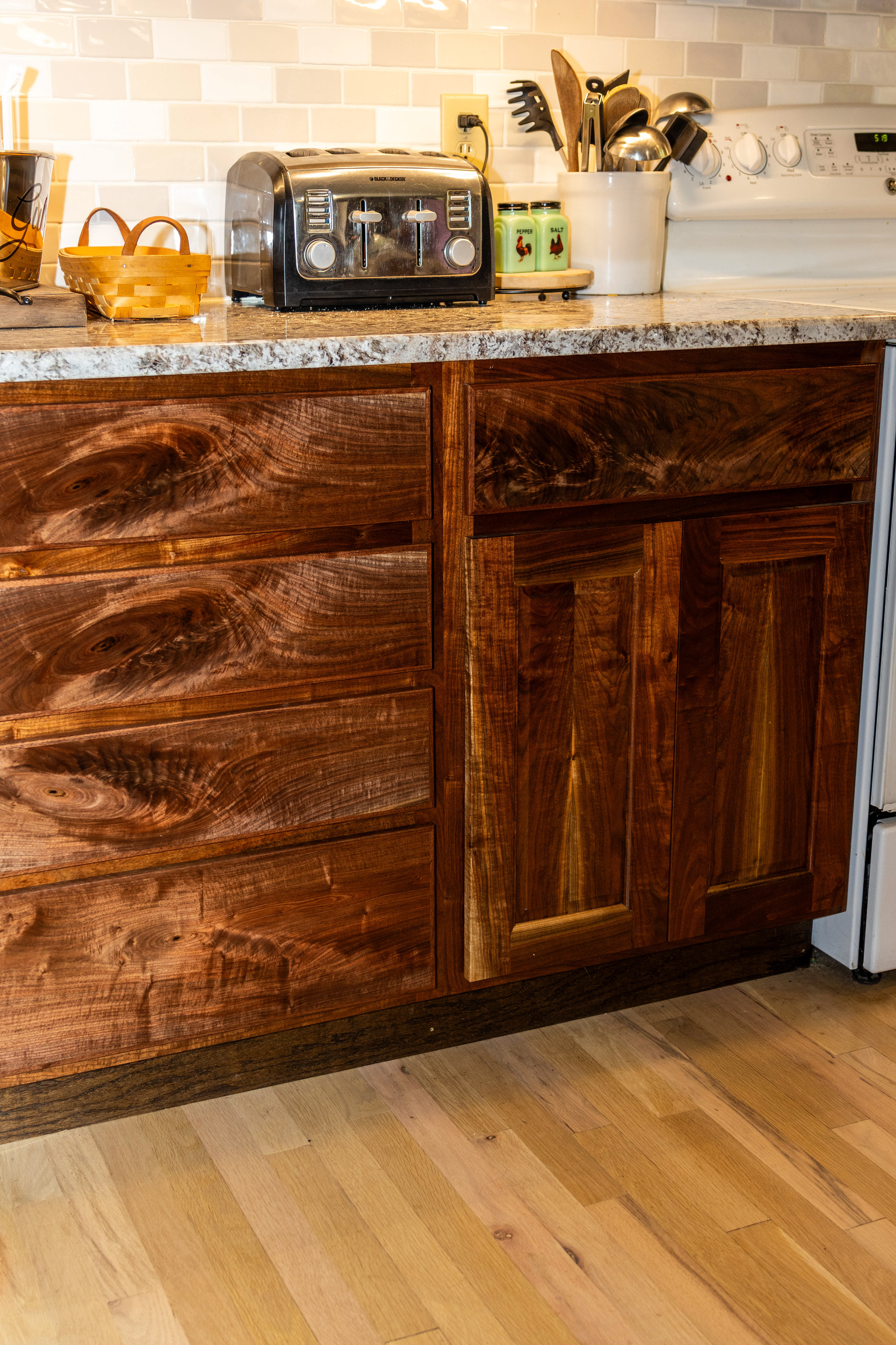 Custom cabinets, drawer fronts, and island